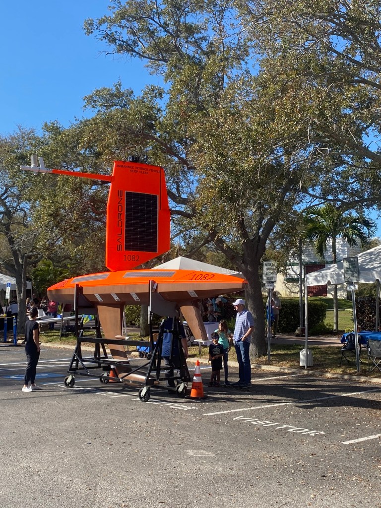 University of South Florida sponsored a science fair last weekend. The focus was on Stem – targeting girls and ocean research. An interesting boat, a 24 foot autonomous drone that sails in all weather collects data for various scientific research groups.
