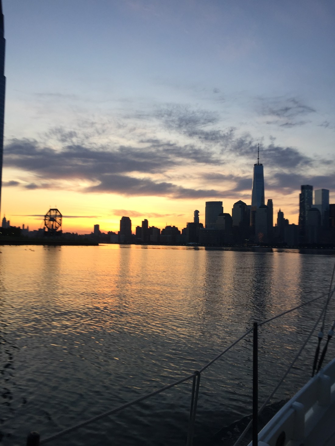 Well, that is how we started the blog on our way back to the boat on Wednesday from NYC. Shortly after we returned, a thunderstorm rolled in with pouring rain and wind gusting to 60+ kts. Heavy lightening bolts pounded the anchorage for over a half hour and visibility was cut to zero. Eric had to go on deck to cut our sun awning down. He left it up since I’ve been melting from the heat. What was Sharon doing? Reading a book for the most part. To steal a quote from Captain Sig Hansen “it got very nautical”.
