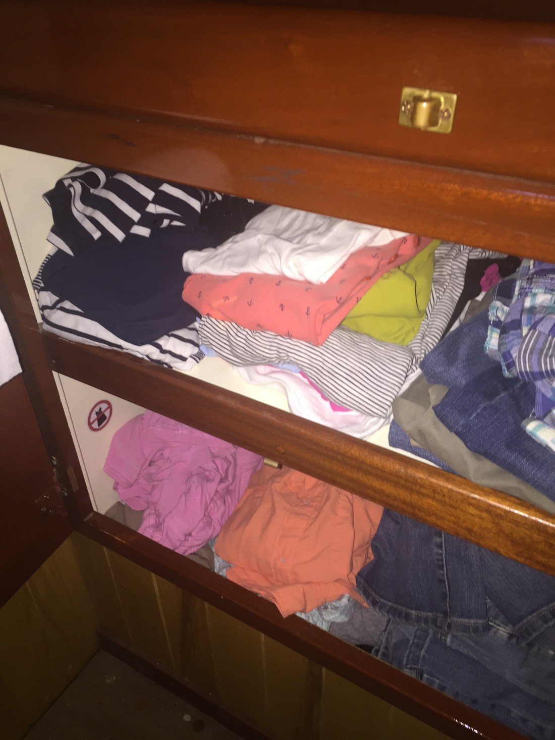 I used to have a huge walk in closet. I now have a cupboard and a few things in a hanging locker. My clothes currently would fill one Rubbermaid container. Not the size with wheels! The saying still holds, I wear 20% of my clothes 80% of the time.