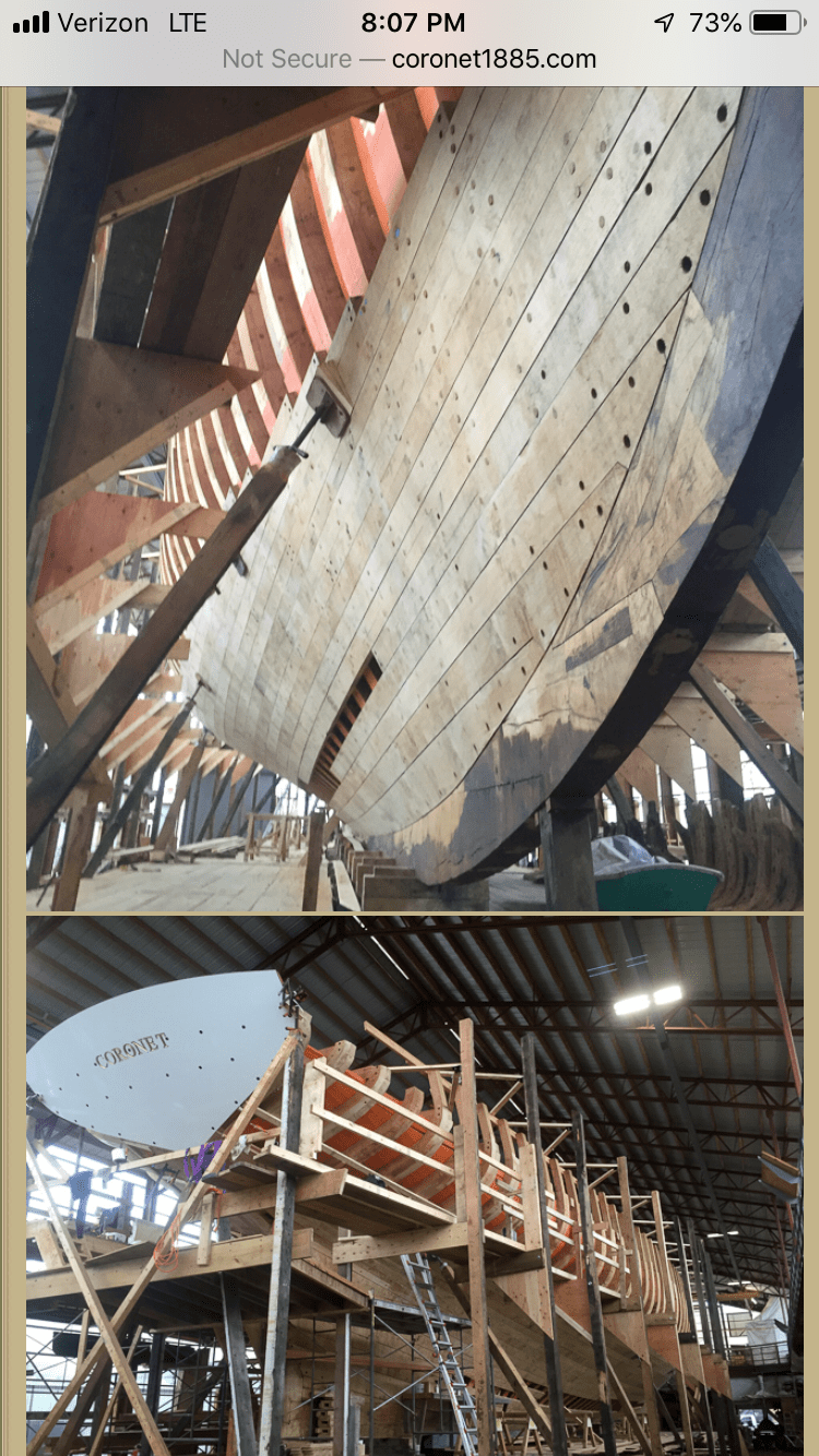 We arrived in Newport, Rhode Island on Monday. It feels like Monaco with so many large yachts over 100′ except they let the non rich and famous in the harbor. A mooring is actually a bargain for the east coast, $40 per night for Thistle. Mega yachts, past America’s Cup winning sailboats, and classic yachts pepper this harbor. While in Newport, we visited IYRS (the International Yacht Restoration School). This is a vocational school that teaches traditional boatbuilding skills. Behind the school on the waterfront, a 105′ schooner the Coronet is being totally restored. They allow you in the workshop to get a closeup view of the ongoing work.