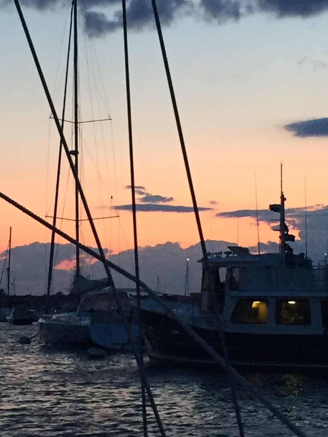 Sunrise in Mystic. Sharon woke up at 2am and went on deck. This was the view when she woke up againConcordia Yawl – Gold standard for a traditional boat