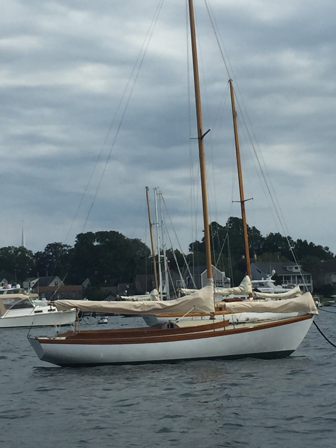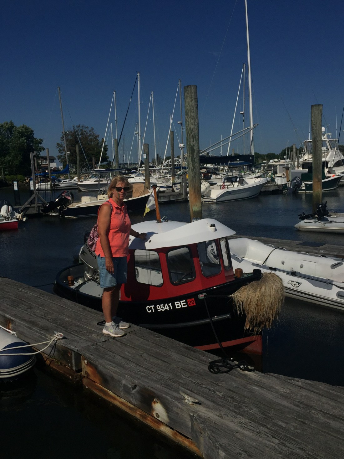 While in Mystic we were moored at a small boat yard that didn’t mind us doing some maintenance on the boat. Eric had to phone a friend i. e. Rich to sort out some electrical gremlins. The Mystic Seaport antique and wooden boat festival took place while we were in town. We motored in the dinghy a few times to see new arrivals. Tomorrow morning, we are leaving early to catch a fair tide that will propel us farther east.