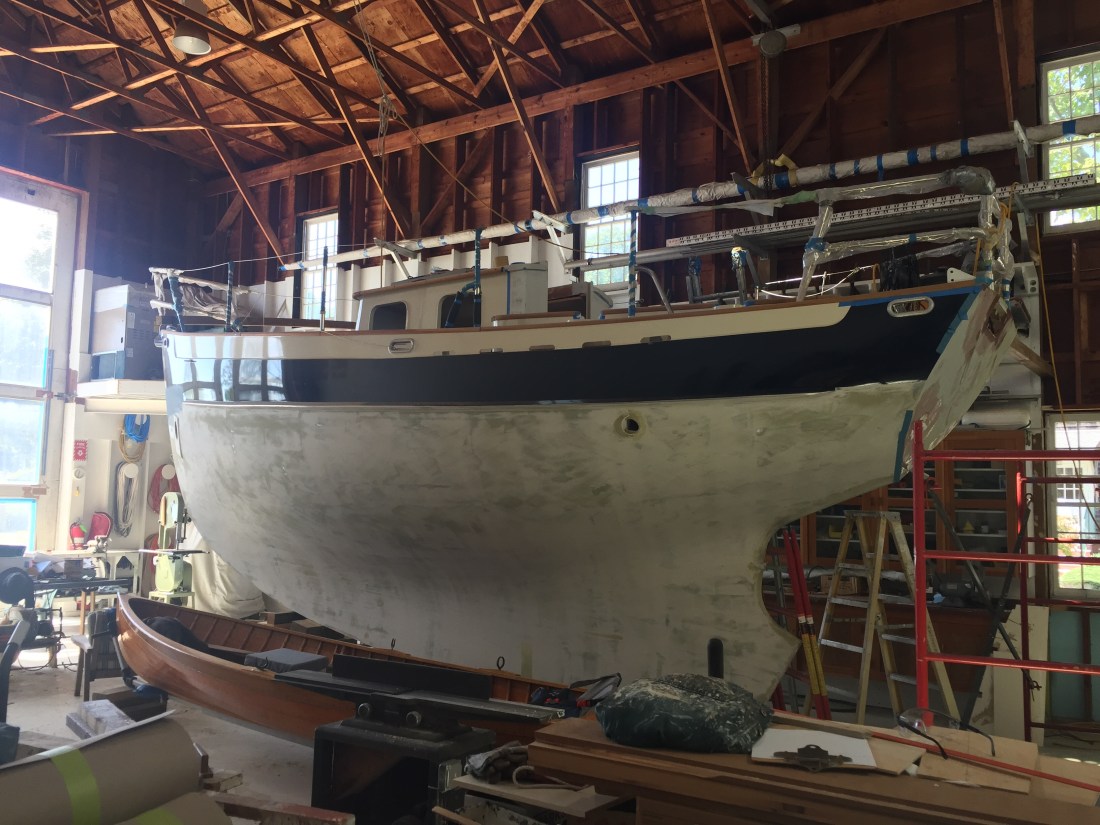 Monday night I left “Thistle” and headed to Branford, Ct. with our son. His five month old puppy “Elo” decided to consume a sock. Granny Nanny is caring for Elo while Eric and Sawyer work. While I am away, Eric is doing boat maintenance.